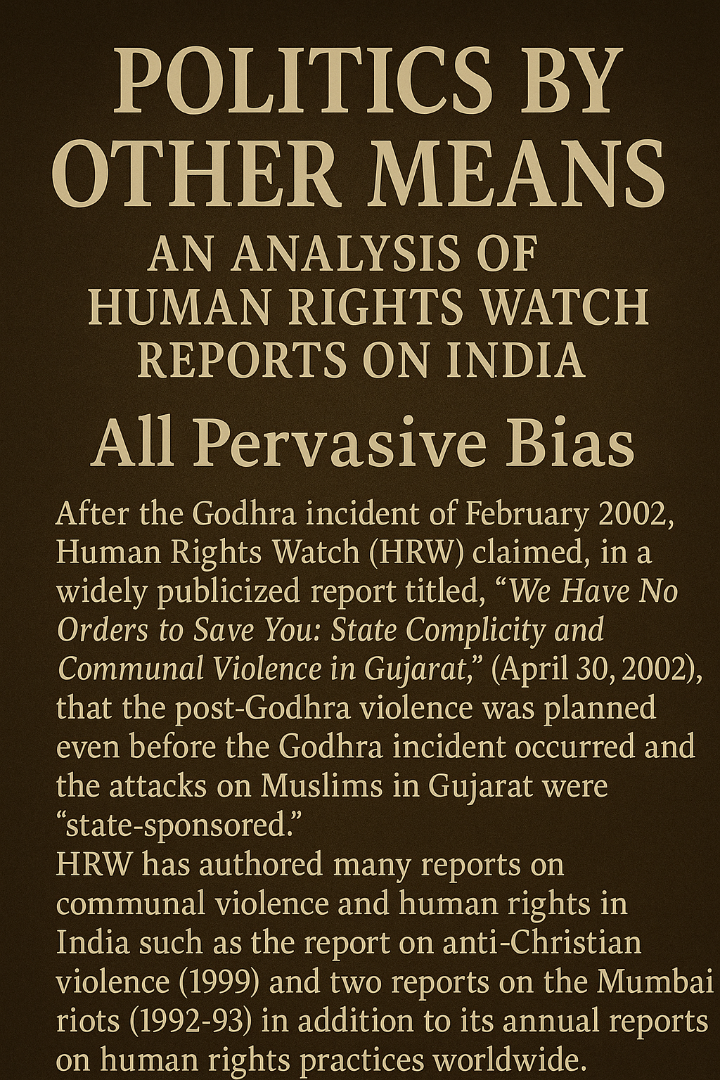 It is not merely the lack of context in HRW reports, but the outright distortions contained in them, that are actually worrying. Blaming “Hindu nationalists” for church blasts carried out by Islamic terrorists, violence against Dalits and wanting to maintain the caste system, the 1984 riots, and insinuating their involvement in the Jhabua rapes are evidence of a concerted effort by HRW to advance a political agenda – an agenda of the Indian left, fundamentalist Christian proselytisers, and others. This political agenda includes demonizing the BJP government and the Sangh Parivar; ignoring minority communalism; ignoring human rights abuses against Hindus; and a barely concealed hostility towards Hinduism itself.